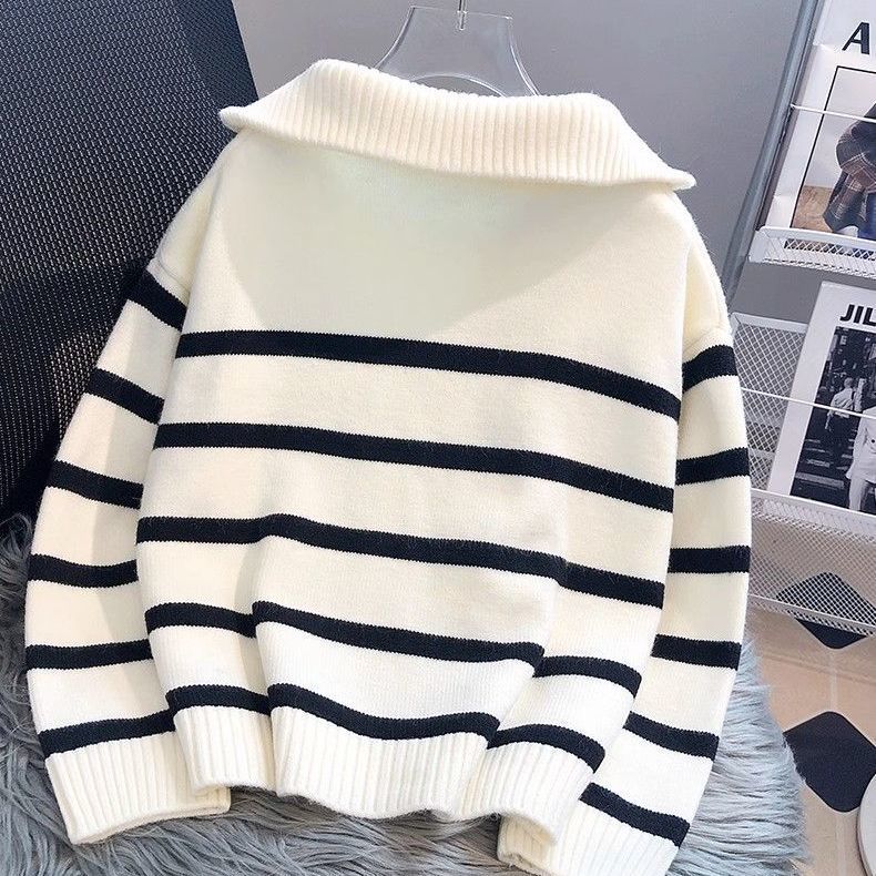 Women’s sweater women’s autumn and winter thick inner wear new zipper striped bottoming shirt short style